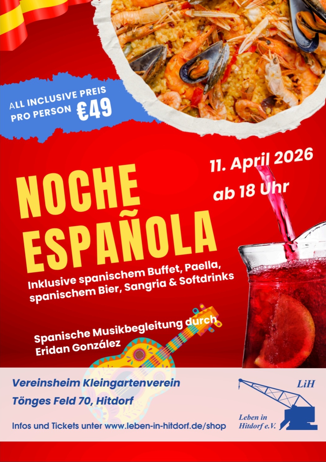und jetzt wirds spanisch…; geniesst mit uns ….Paella, Tapas, Sangria, Cerveza…. und natürlich spanische Livemusik